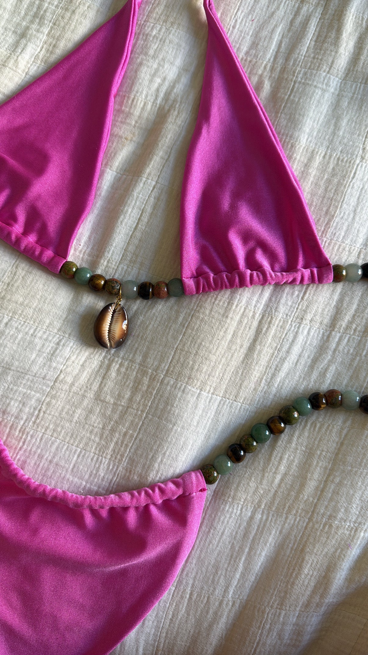 our bikinis are made from a repurposed 87% polyester + 13% spandex.